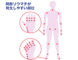 病気が進行していくと、関節の骨や軟骨が破壊されて関節に変形が起こり、関節を動かせる範囲が狭くなってきます。全身的な症状としては疲れやすさ、脱力感、体重減少、食欲低下などがみられるようになります。